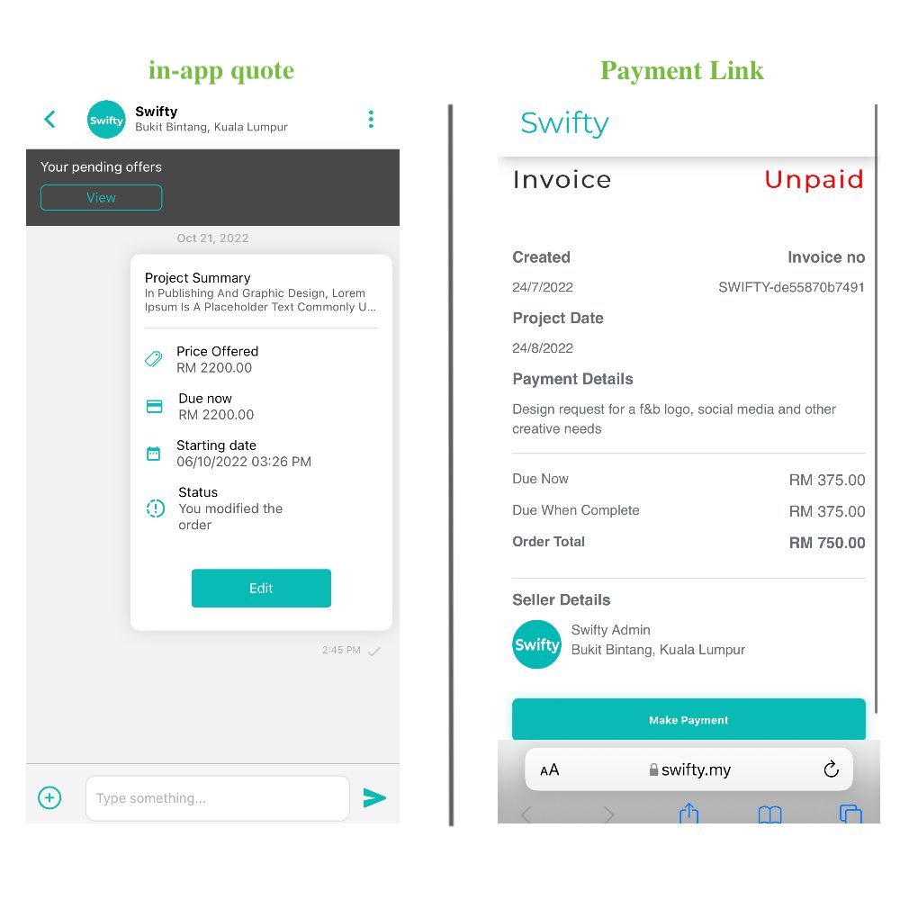 #Tips 2:- If you have customers that contact you via in-app, you may send a quote in the chat page for them to make payments. If they contacted you using Whatsapp directly, you may send the Payment Link instead.