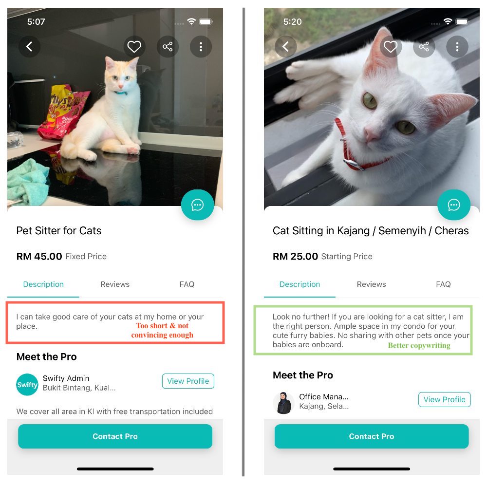 #Tips 2: - Update your service description with a great copywriting so that the customer understands on your offering and is convinced in hiring you. Let them know what's included in the service, any free additional service, your availability date and more.