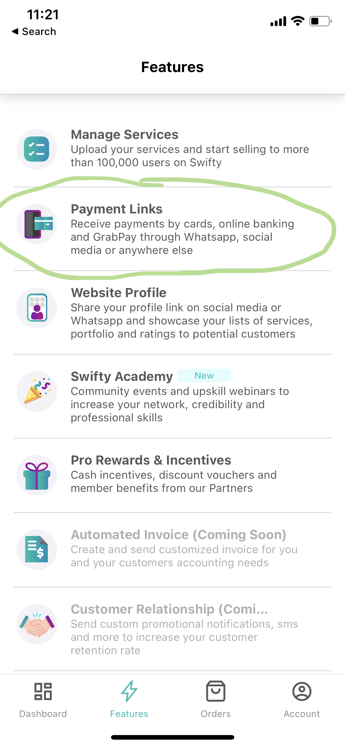 *Portfolio by Aimi Fathiha#Tips 1:- Start sharing your payment link to your existing non-Swifty customers where they can make payments using Card/ FPX or GrabPay. Swifty does not charge any transaction fee on your orders. This will help increase your total hired and listing position in the app.